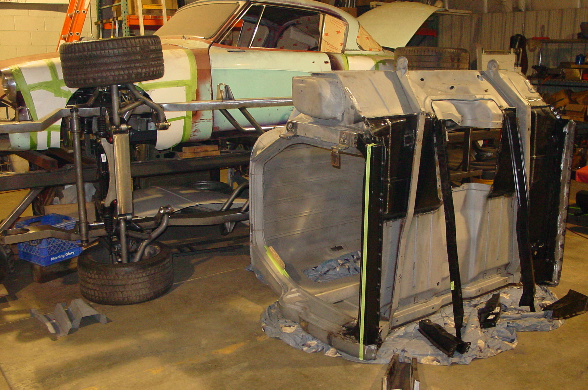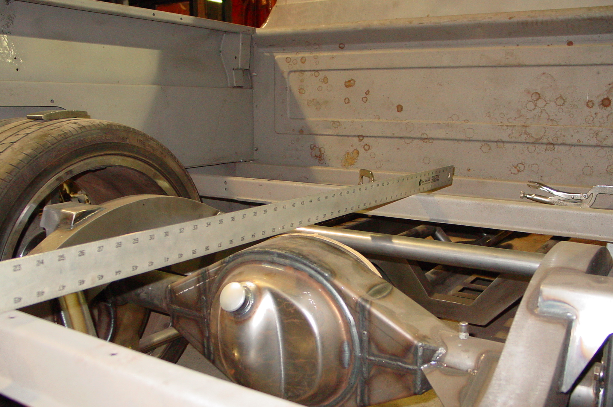After blasting the old paint off we found a lot of filler over the rust holes. We removed the old rusted metal and replaced them with new steel. Now that the body is solid, the modifications have begun. -- Firewall, inner fenders, front fenders, front bumper, rear bumper, tailgate, and rear wheel opening.