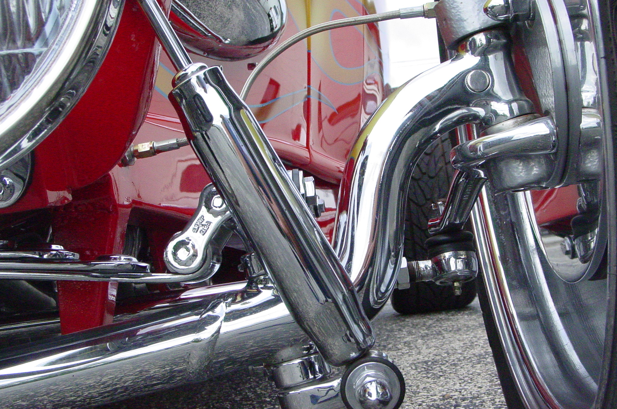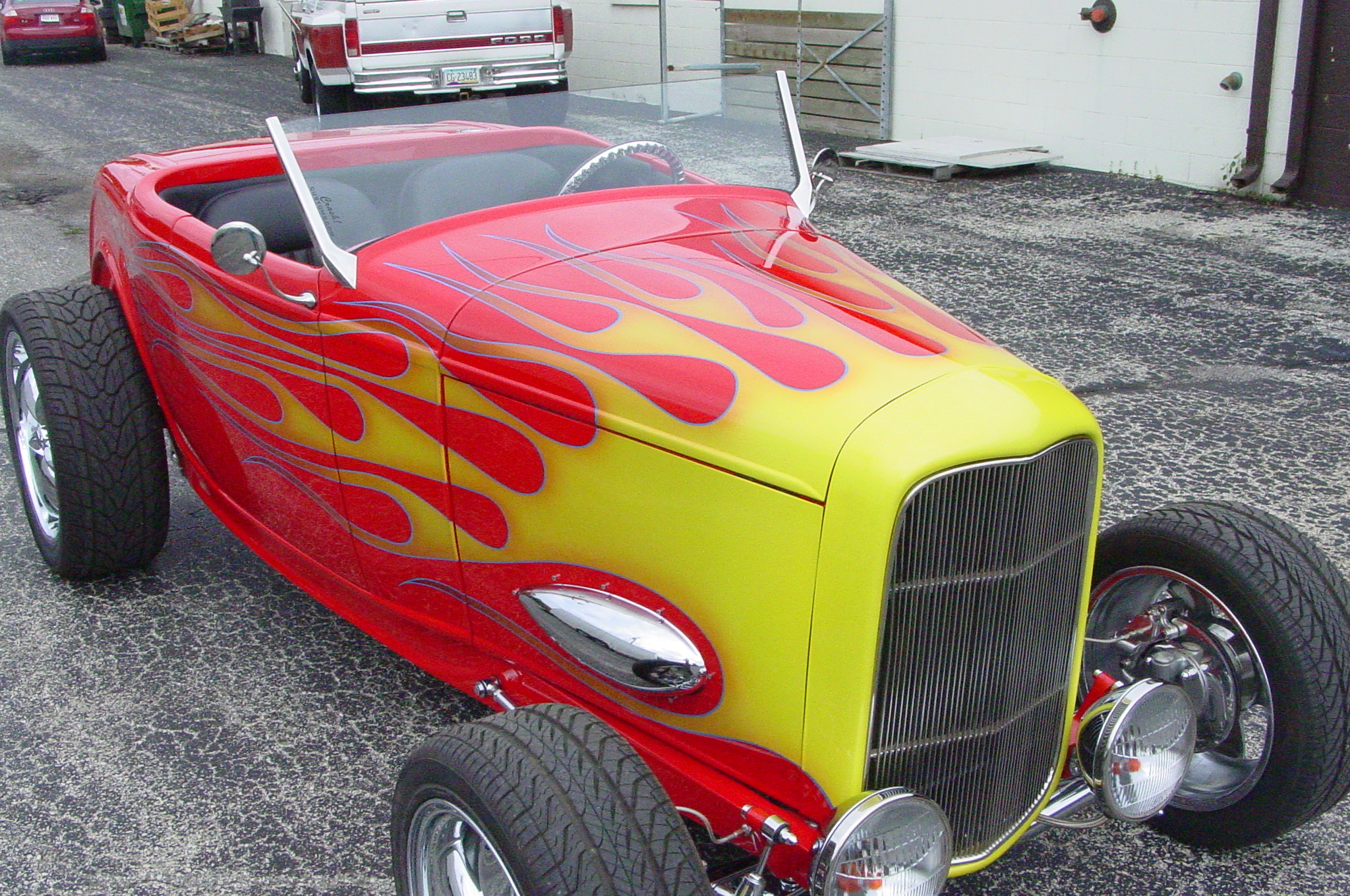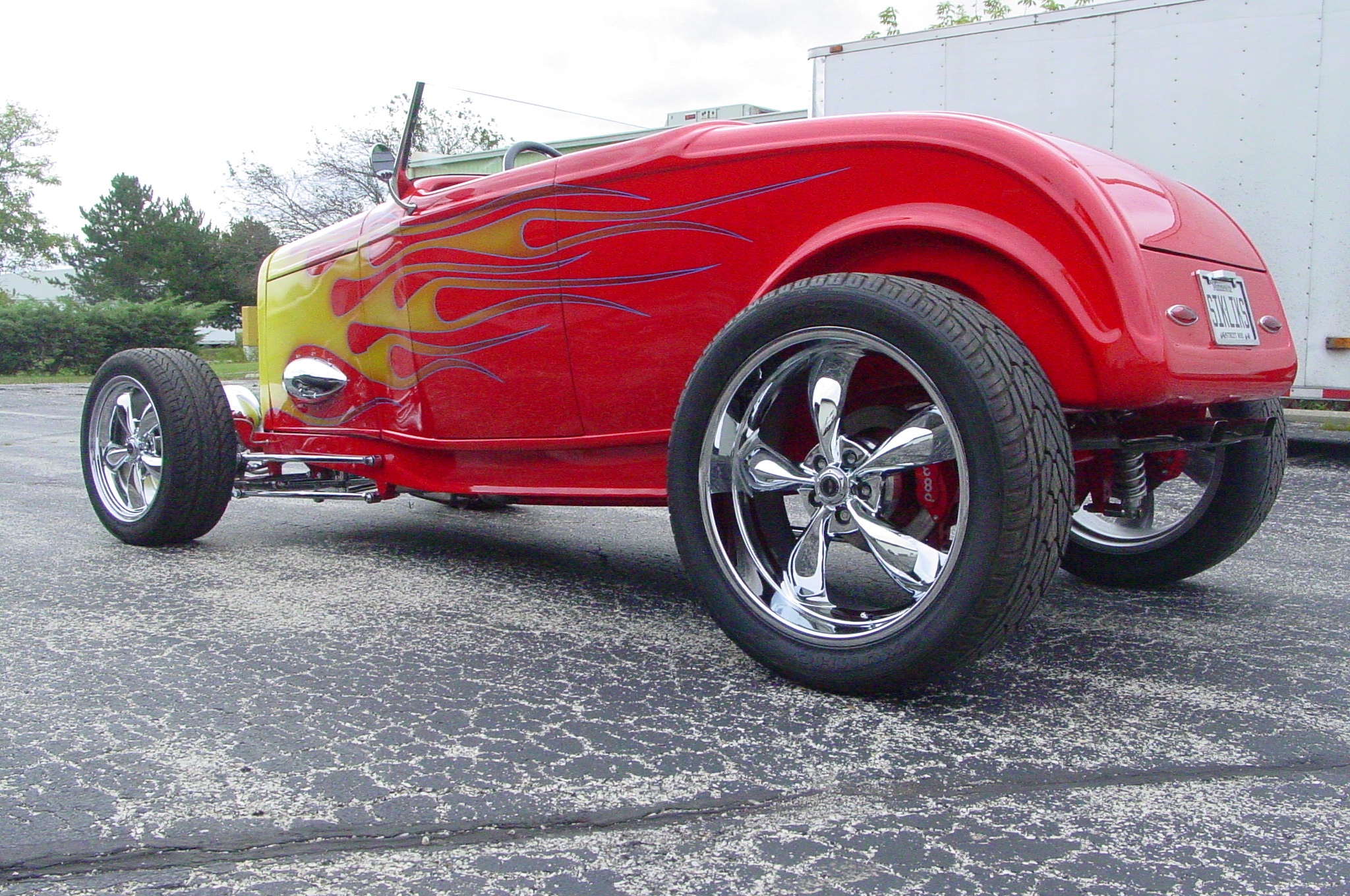 - Custom mix red paint with flame job. Wet sanded to a mirror finish.